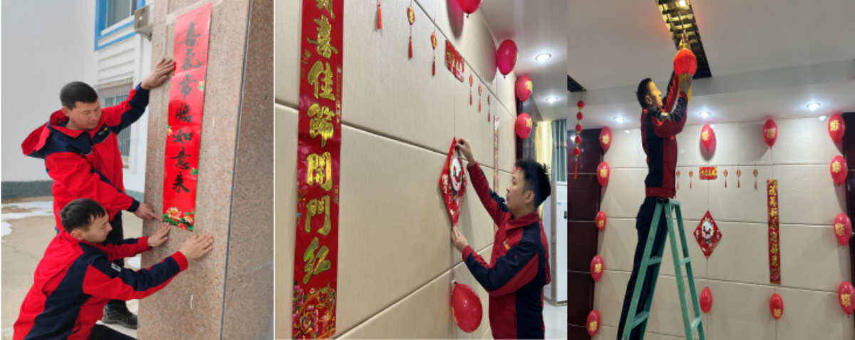 為了營造喜慶、祥和的節(jié)日氣氛,大家齊心協力為電站換上了“龍年新裝”,大家一起動手,打掃場站衛(wèi)生、貼對聯、貼福字、掛燈籠,張燈結彩、好不熱鬧,陣陣笑聲中散發(fā)出溫馨喜悅迎新春的氛圍。